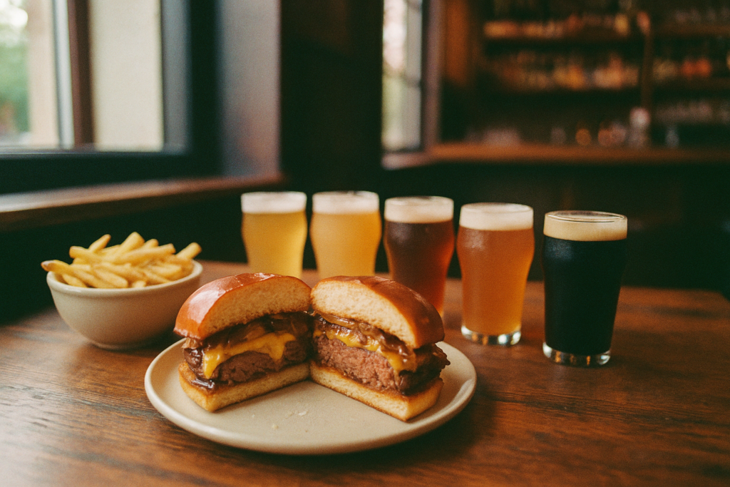 Bitterhed (humle) kan skære igennem ost, bacon og sød ketchup, så burgeren føles mere balanceret. Det er grunden til, at IPA og pale ale ofte fungerer, også når du ikke kender burgerens detaljer.